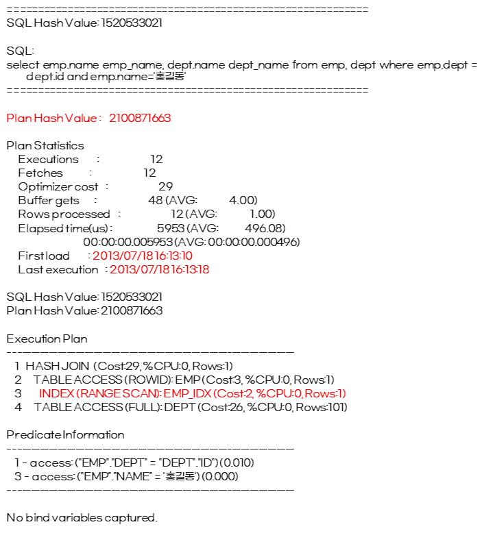 Hash_value가 n인 쿼리의 d일(SQL 이력 출력할 시작시점) 이후 실행 상황을 출력합니다.
