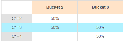 Bucket 수와 변수 수가 일치하는 경우로, 동일한 값이 집중적으로 분포되어 있을 시 나타나는